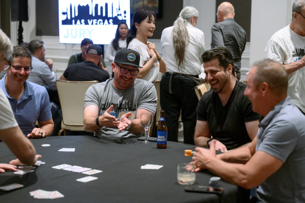 We kicked off the JuryBall Vegas experience with an intimate evening hosted by Sean Claggett. Guests enjoyed craft cocktails, chef-prepared bites, professional poker lessons, and party buses on their return.